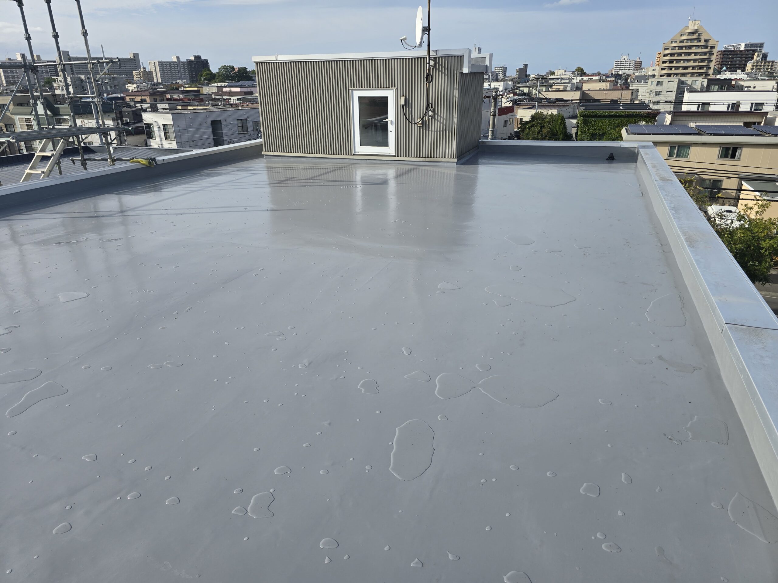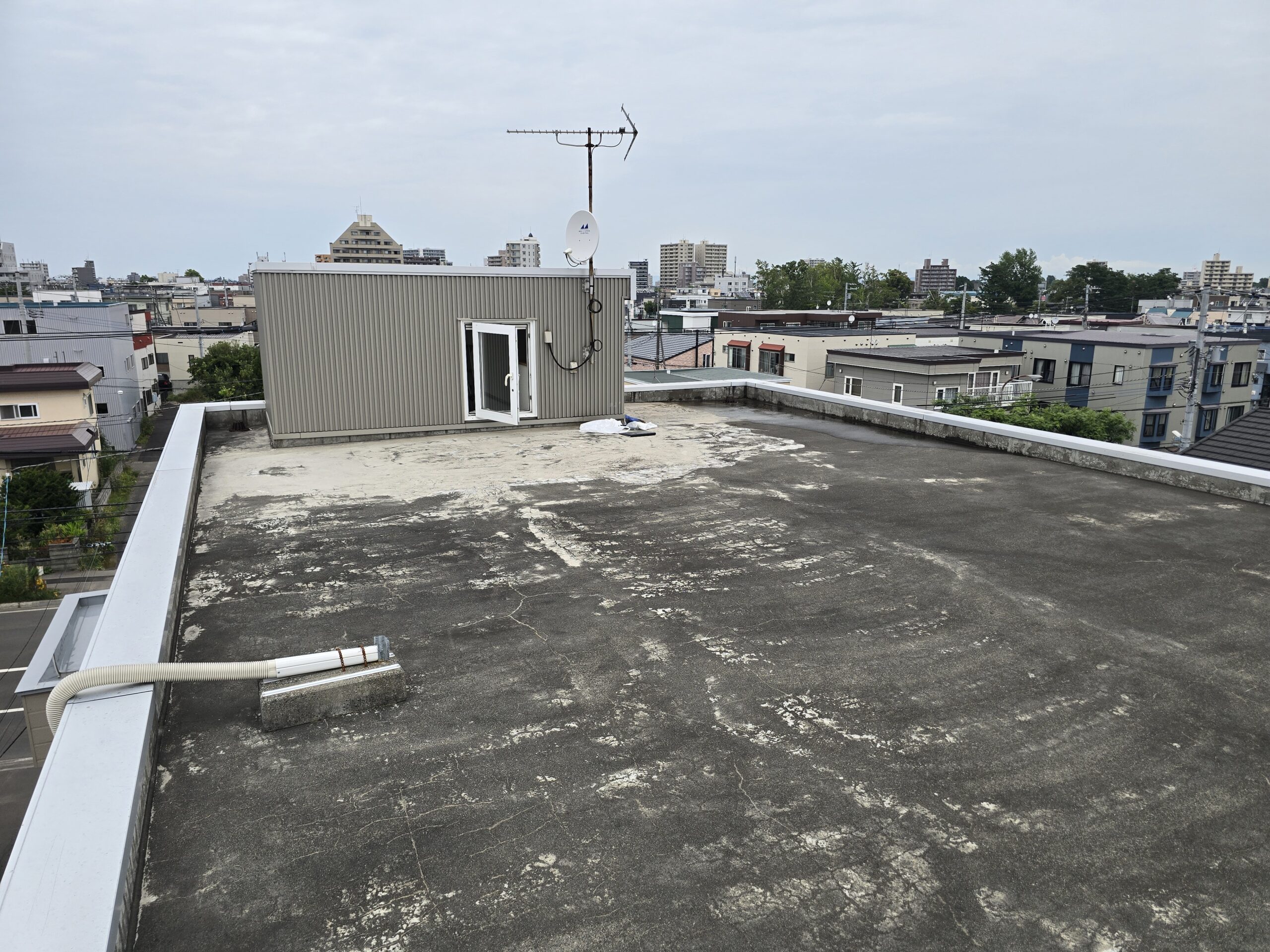 2025.10.17 こんなことも リフォーム希望の方へ 法人の方へ 防水改修工事 札幌市東区にて今回は 鉄骨造の屋上防水改修工事です。 築30年ほどの建物で、漏水事故発生のためウレタン塗膜防水にて防水工事させていただきました。 防水は10年保証が一般的なため、保証が切れる前のメンテナンスが必要になるので、賃貸MSなどの建物は入居者にご迷惑掛る前に、改修をすることをお勧めします。 改修前全景 改修後 改修後 一覧に戻る